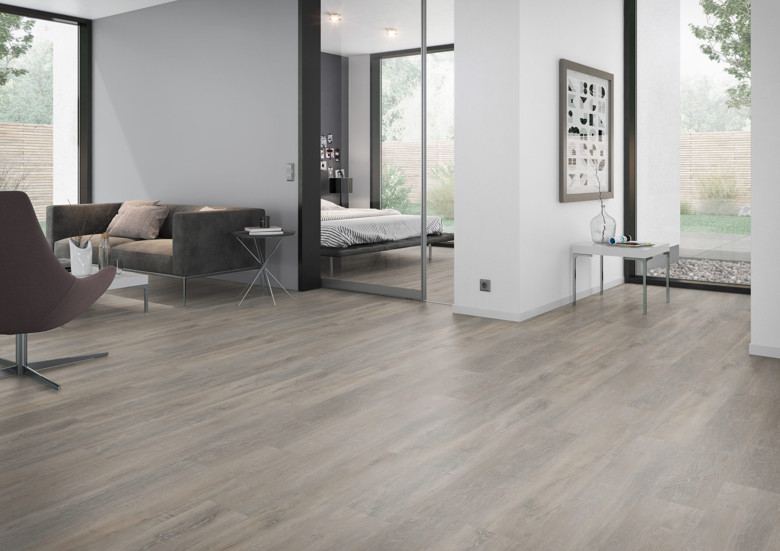 Old Oak Greige ahmt das natürliche Aussehen und Gefühl von echtem Holz nach und verleiht jedem Raum Wärme und eine einladende Atmosphäre. Mit seinem eleganten Design und praktischen extra-großen Dielen zum Verleimen bietet Old Oak Greige eine stabile und attraktive Bodenlösung für Ihr Interieur.