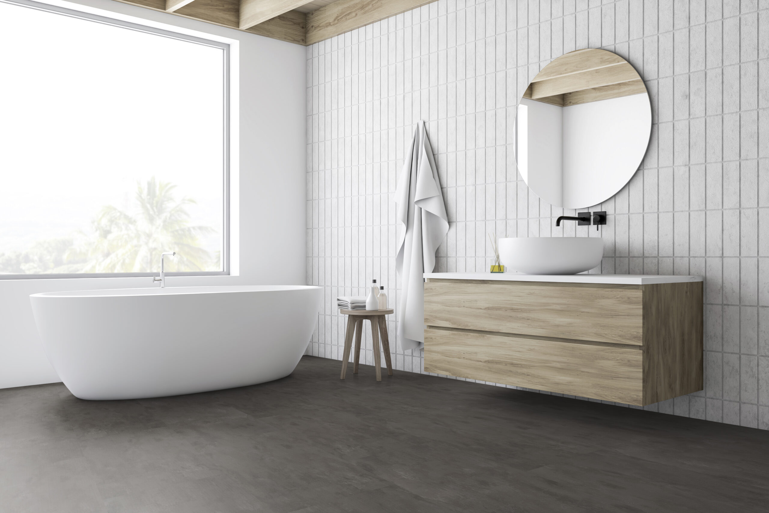 Bringen Sie mit Rigid-Klick-Vinyl-Fliesen Stil in Ihr Zuhause. Unser Naturstein-Design Origin Concrete Dark grey ist der perfekte Bodenbelag für Ihre Küche oder Ihr Bad. Unser äußerst praktischer und einfach zu verlegender Rigid-Klick-Bodenbelag ist geeignet für Feuchträume und mit einer Fußbodenheizung kompatibel. Mit unseren Vinyl-Fliesen, die eine optimale Raumluftqualität aufweisen und zu 100 % phathalatfrei sind, steht das Wohlbefinden in Ihrem Haushalt an erster Stelle.