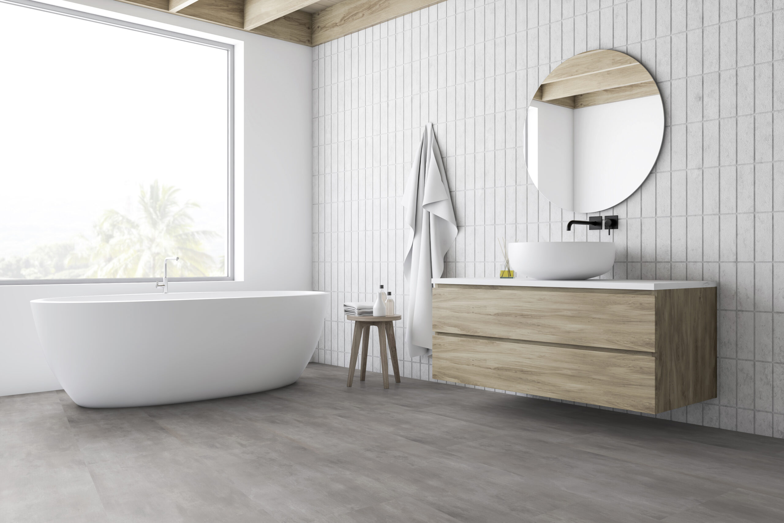Bringen Sie mit Rigid-Klick-Vinyl-Fliesen Stil in Ihr Zuhause. Unser Naturstein-Design Origin Concrete Natural ist der perfekte Bodenbelag für Ihre Küche oder Ihr Bad. Unser äußerst praktischer und einfach zu verlegender Rigid-Klick-Bodenbelag ist geeignet für Feuchträume und mit einer Fußbodenheizung kompatibel. Mit unseren Vinyl-Fliesen, die eine optimale Raumluftqualität aufweisen und zu 100 % phathalatfrei sind, steht das Wohlbefinden in Ihrem Haushalt an erster Stelle.