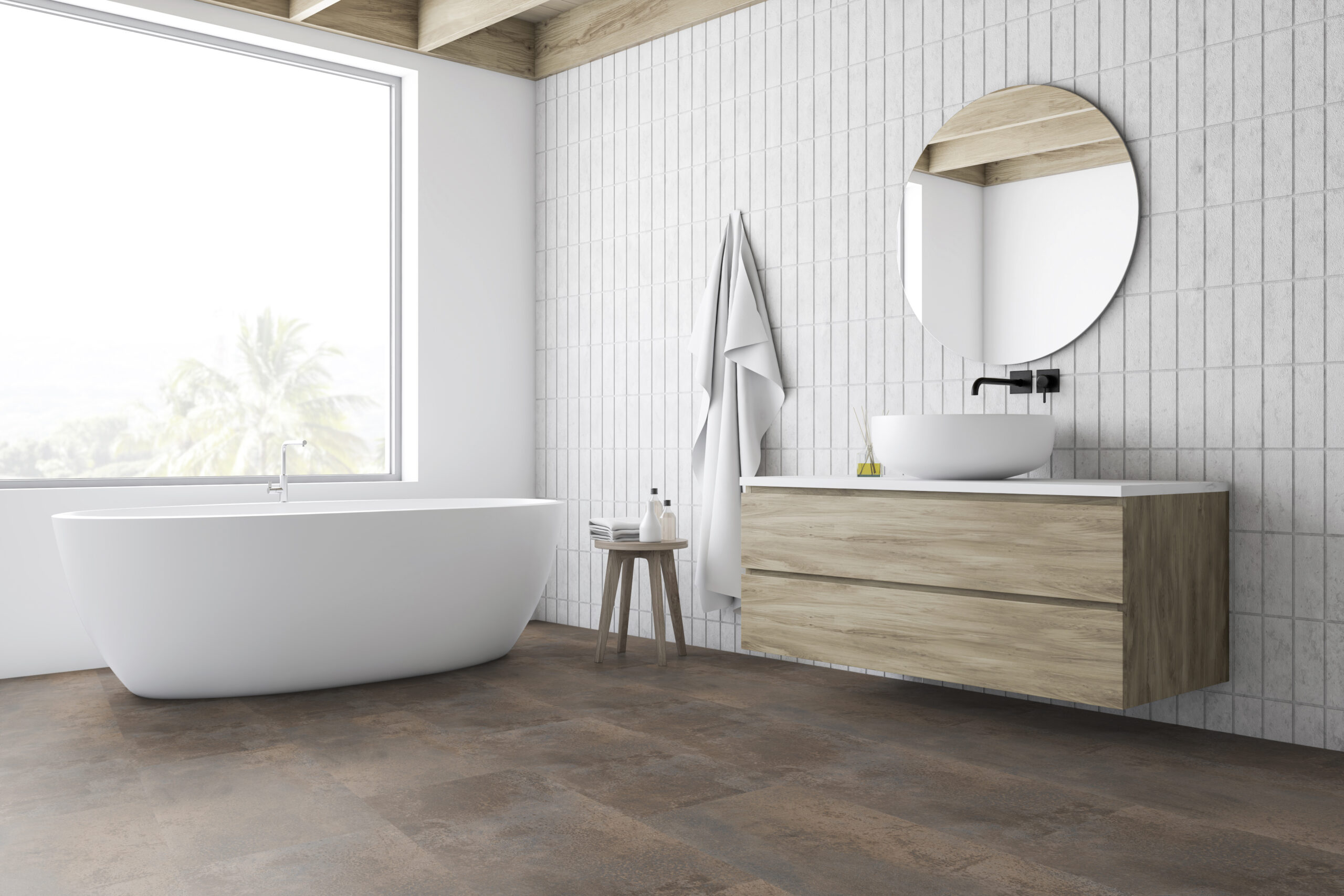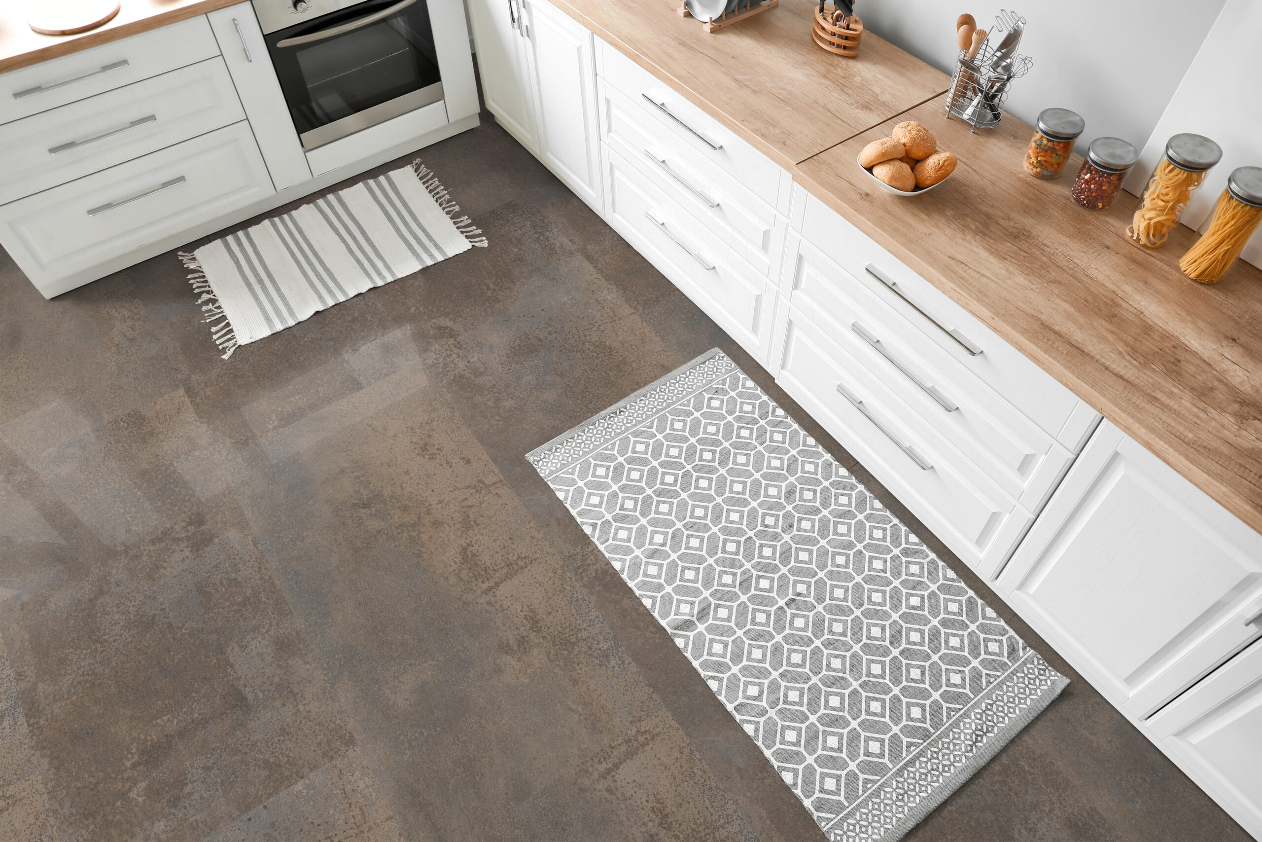 Bringen Sie mit Rigid-Klick-Vinyl-Fliesen Stil in Ihr Zuhause. Unser Naturstein-Design Oxyde Rust ist der perfekte Bodenbelag für Ihre Küche oder Ihr Bad. Unser äußerst praktischer und einfach zu verlegender Rigid-Klick-Bodenbelag ist geeignet für Feuchträume und mit einer Fußbodenheizung kompatibel. Mit unseren Vinyl-Fliesen, die eine optimale Raumluftqualität aufweisen und zu 100 % phathalatfrei sind, steht das Wohlbefinden in Ihrem Haushalt an erster Stelle.