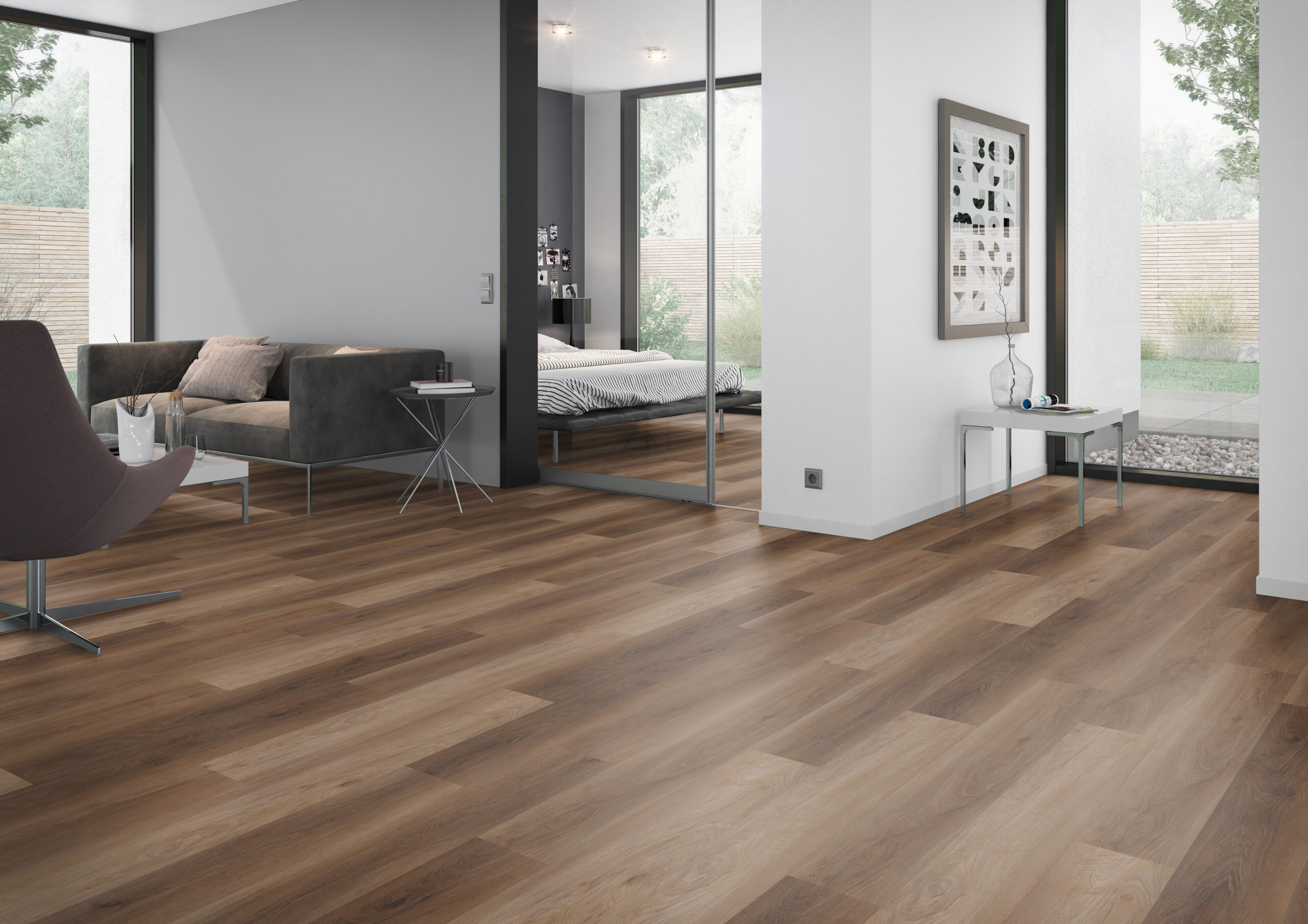 Apportez authenticité et chaleur à votre projet de rénovation avec nos lames en vinyle. Inspiré du bois, Walnut Natural, crée une atmosphère accueillante et confortable dans chaque pièce. Conçus pour durer, nos revêtements de sol sont non seulement résistants à l’eau, mais également compatibles avec le chauffage par le sol, alliant praticité et élégance. Offrez à votre foyer un environnement sain grâce à nos lames en vinyle, qui garantissent une qualité optimale de l’air intérieur et sont 100 % sans phtalates.
