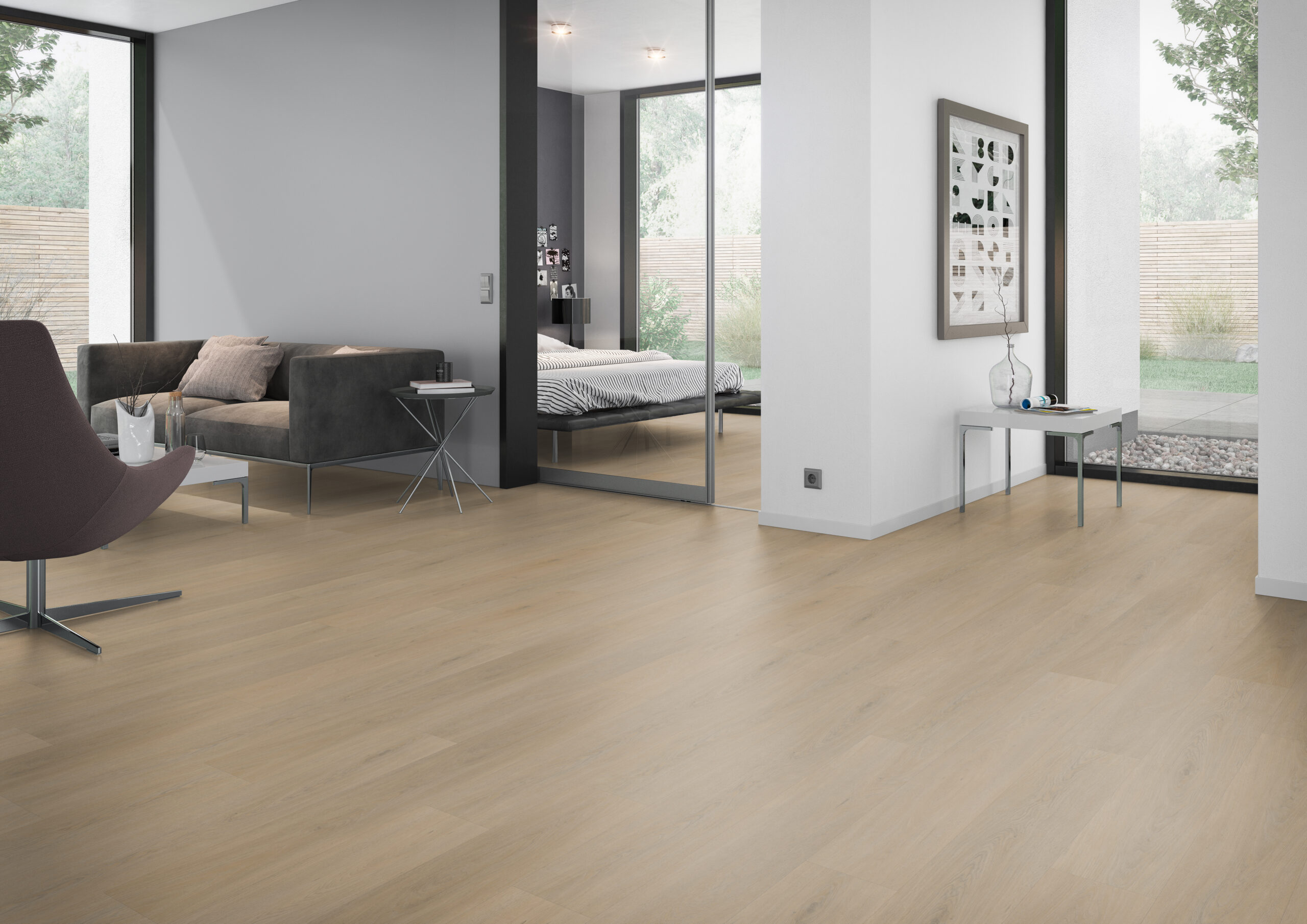 Bring authenticity and warmth to your renovation project with vinyl planks. Our beautiful, wood-inspired design English Oak Warm Natural enhances any space with a cozy and inviting atmosphere. Designed for durability, our flooring is hard-wearing, water-resistant, and compatible with underfloor heating – making it both practical and stylish in any environment. Prioritise well-being with our vinyl planks, which boast an optimal indoor air quality rating and are 100% phthalate-free, ensuring a safe and sustainable choice for your project.