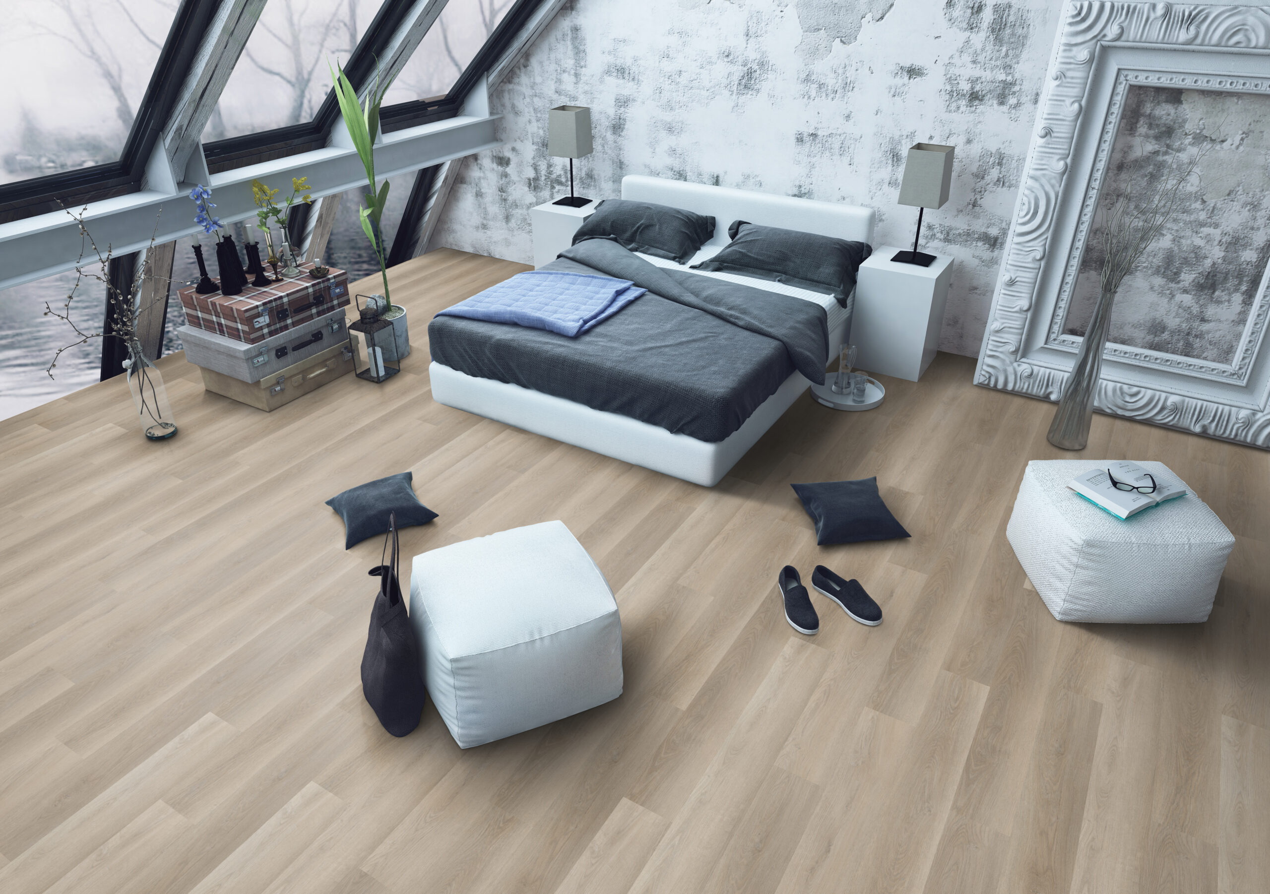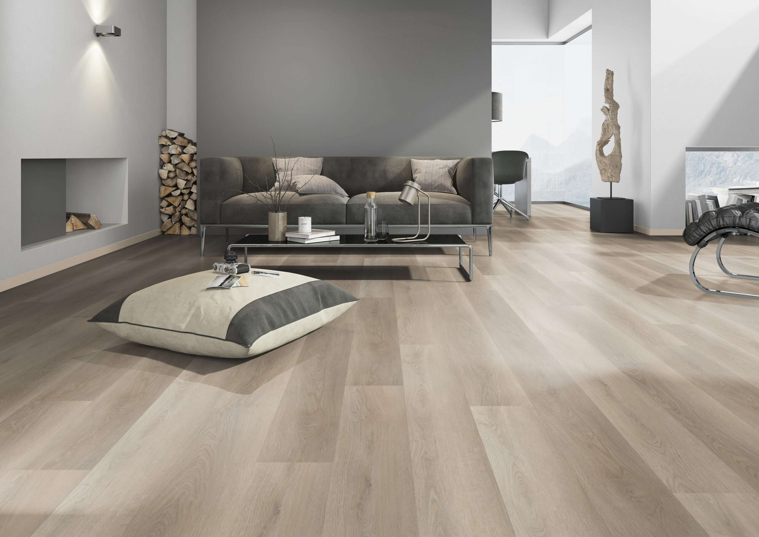Bring authenticity and warmth to your home with rigid click vinyl planks. Our beautiful, wood-inspired design Soft Oak Greige creates a cozy and welcoming atmosphere in any room. Ultra-practical and easy to install, our rigid click flooring is water-resistant and compatible with underfloor heating. Prioritise your household’s well-being with our vinyl planks, designed for optimal indoor air quality and 100% phthalate-free.